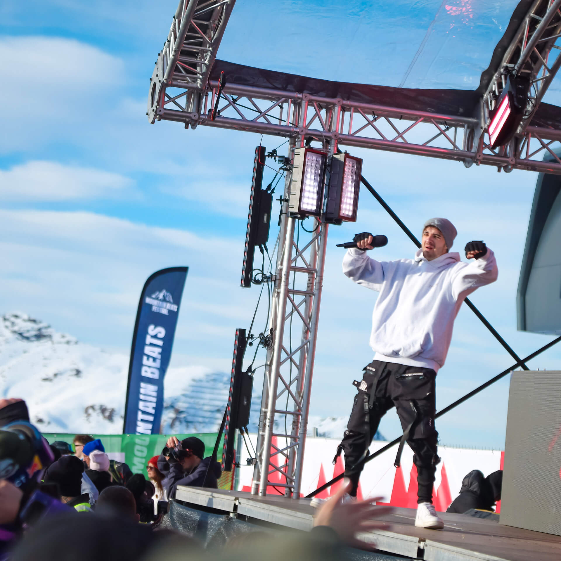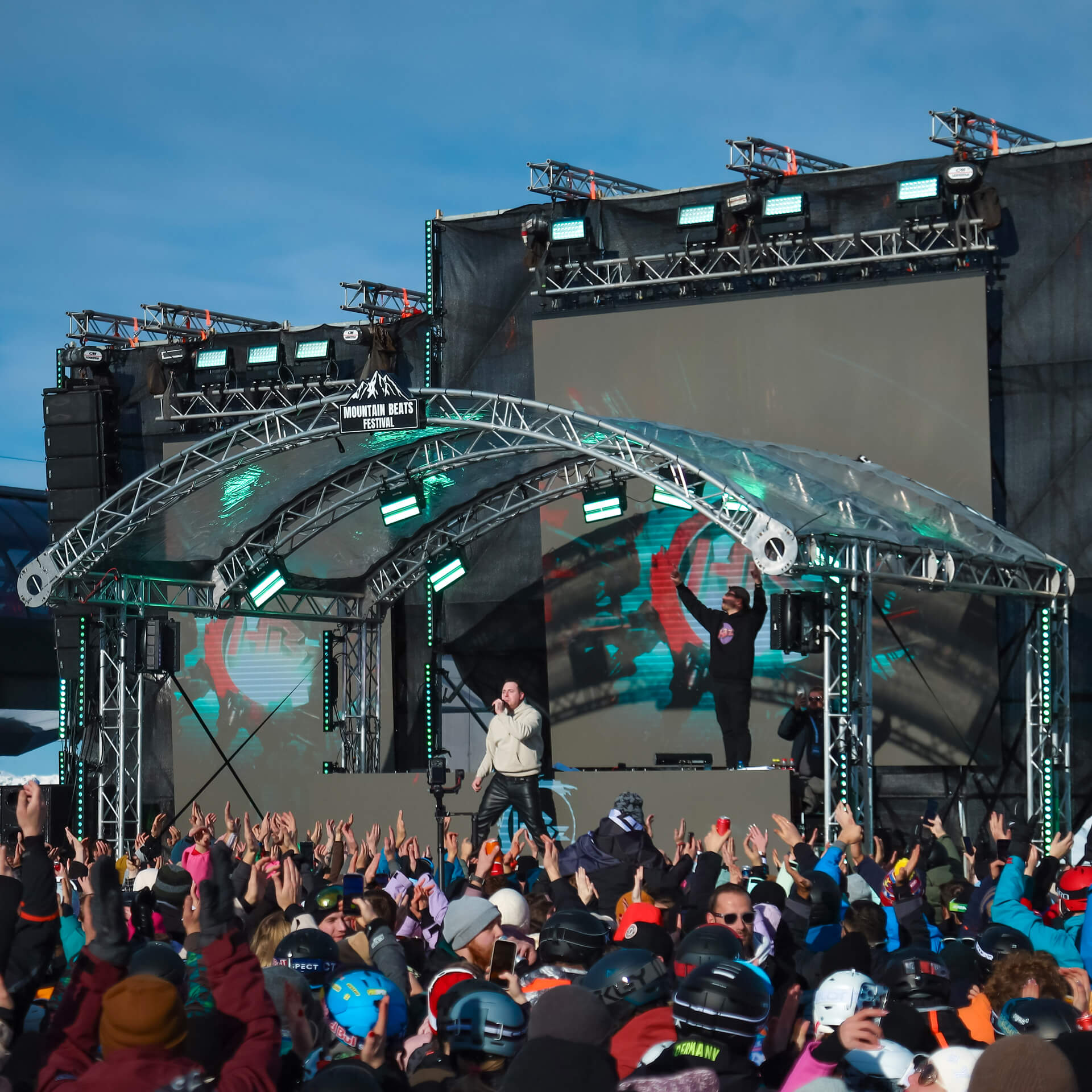 Auf der Bergstation erwartet dich eine ausgefallene Festivalatmosphäre mit mitreißenden Beats, cooler Stimmung und beeindruckender Lichtkulisse mitten im Winterwunderland.